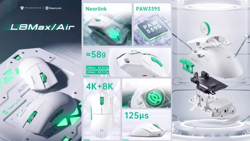 Sản phẩm tiêu biểu có trang bị công nghệ NearLink mà Network Hub đang phân phối là chuột Machenike L8 Max và L8 Air. NearLink đem lại khả năng kết nối không dây vượt trội với kết nối ổn định, hiệu suất không bị lag và độ trễ đầu vào cực thấp. Cả hai model này đều được thiết kế độc quyền để mang lại hiệu suất ấn tượng với tốc độ phản hồi tối đa 8000Hz ở chế độ có dây và lên đến 4000Hz ở chế độ không dây.